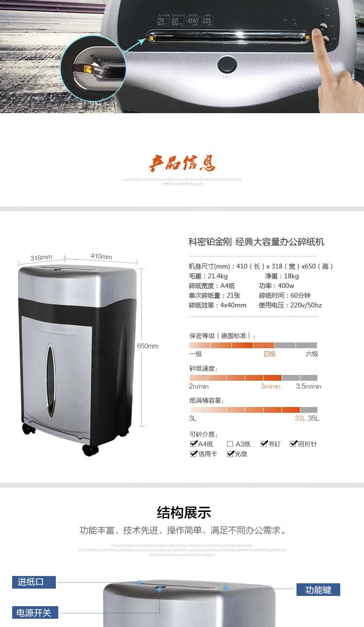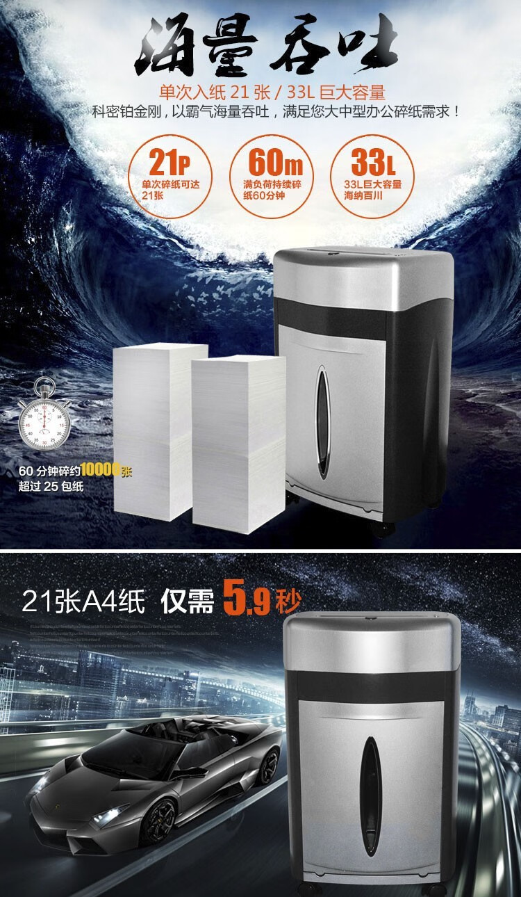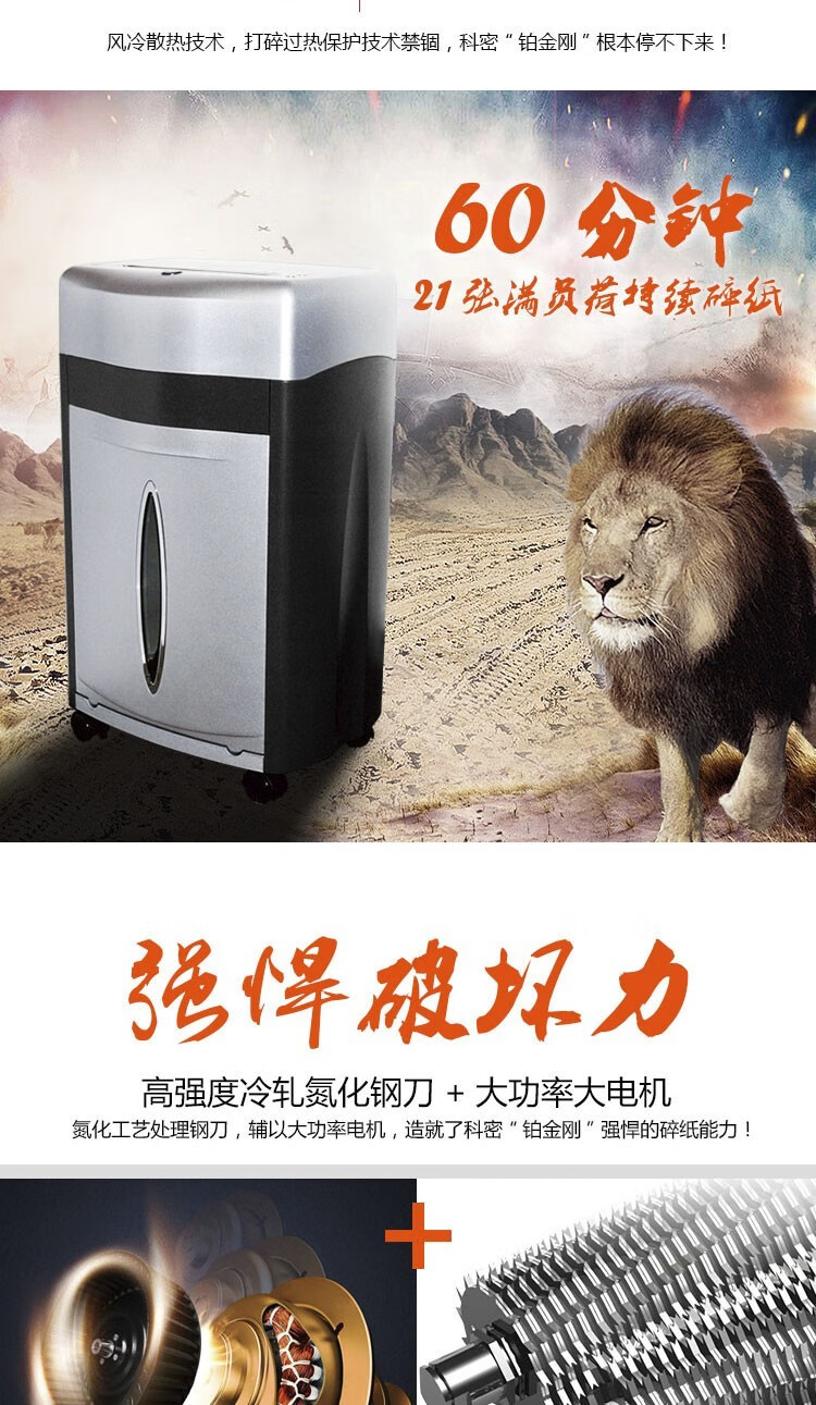 科密/Comet 鉑金剛 碎紙機 科密鉑金剛碎紙機 單次21張 33L大容量多功能 可碎卡 光盤 書針 連續碎紙60分鐘大功率商用辦公