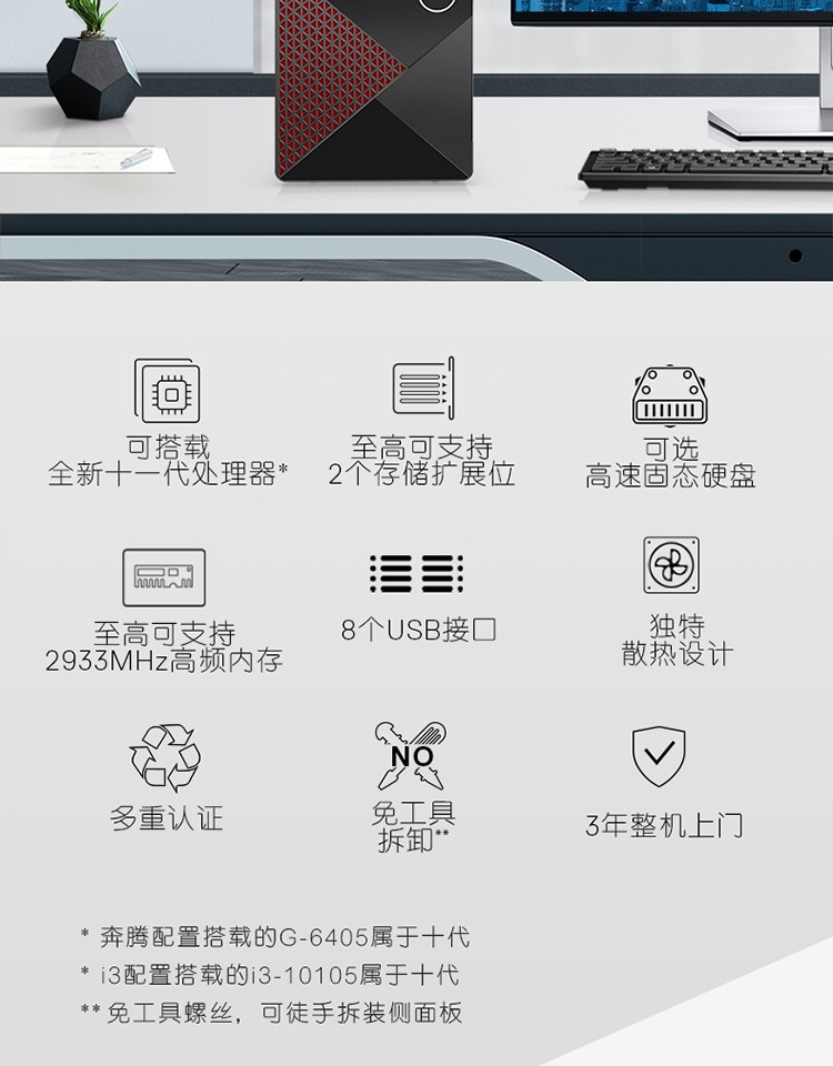 戴爾/DELL 成就3890臺式計算機十代酷睿i3-10105辦公臺式機電腦整機家用網課主機 主機+23.8英寸顯示器1080P 定制:四核i3 8G 1T+128G 核顯